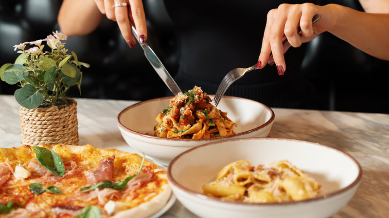 Makaron z grzybami, pieczona lub grillowana ryba, białe mięso i dania główne zawierające produkty mleczne.